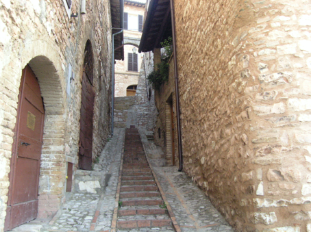 Veel panden zijn mooi gerestaureerd en het is hier overal erg schoon. Omdat het stadje op een berg is gebouwd heb je overal mooie doorkijkjes het dal in. In het voorjaar met sacramentsdag zijn de straten hier een bloemenmozaïek. Er zijn veel winkeltjes en ateliers die kunst of kunstzinnige voorwerpen verkopen. Als we boven van het uitzicht genieten zien we dat er een echte camperparkeerplaats is bij de voetbalvelden. Dat moeten we in gedachten houden, want we komen zeker nog eens terug. In de Santa Maria Maggiore is een prachtige kapel met daarin schitterende fresco’s van Pinturicchio. Ze stellen gebeurtenissen uit het leven van Maria voor. In een winkeltje dat gespecialiseerd is in dingen gemaakt van olijfhout kopen we twee kerststalletjes en oorbellen. We kopen brood bij de bakker en gaan terug naar de camper. We vertrekken naar Assisi. Het is een kort ritje en we arriveren rond 12 uur op de camping. We doen vandaag niet veel meer dan wat lezen en opruimen.